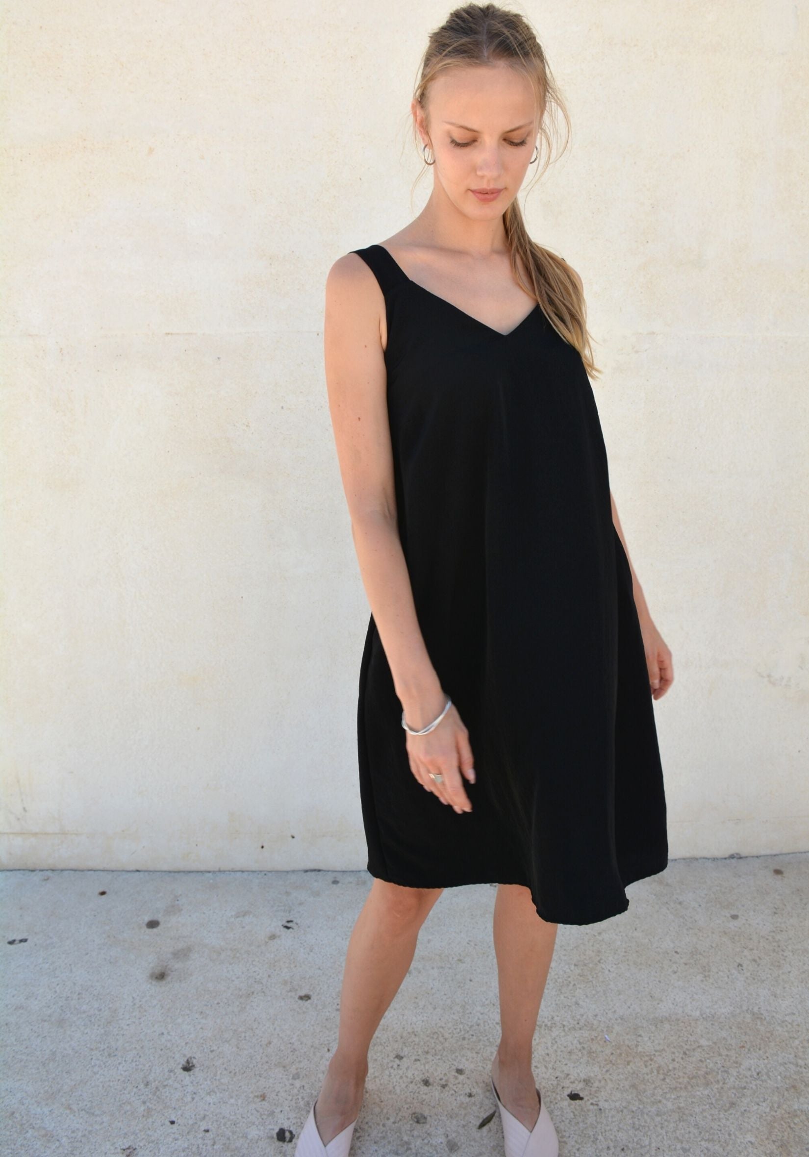 שמלת קיץ יפהפייה בגזרת A עם מפתח וי, כתפיות רחבות, גומי בגב ללבישה קלה וכיסי צד - כי אי אפשר בלי.